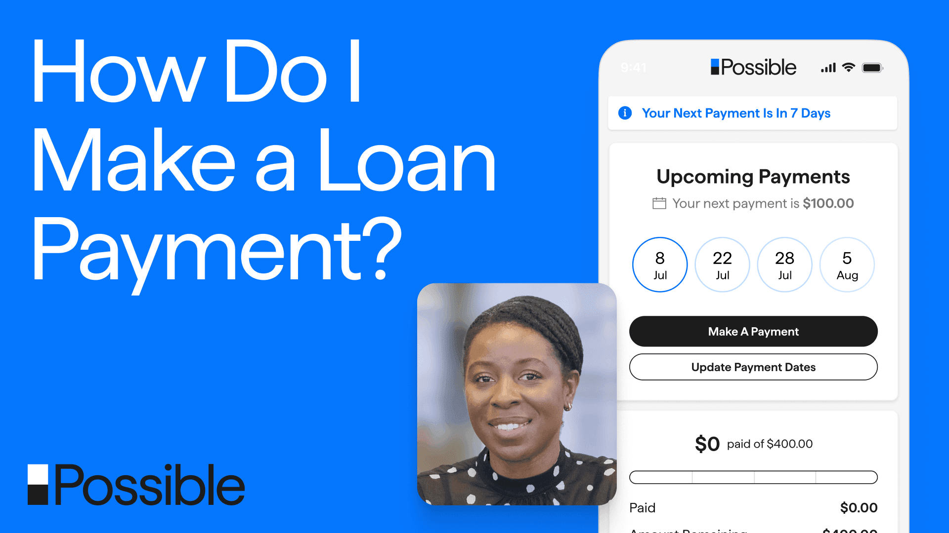 A majority of customers who utilize the Relief Plan come back to Possible for another loan—and according to our November 2025 analysis, 97% of those subsequent loans don’t charge off. That means for our community, getting back on your feet is Possible even after financial adversity. When you need more time, you can count on Possible.