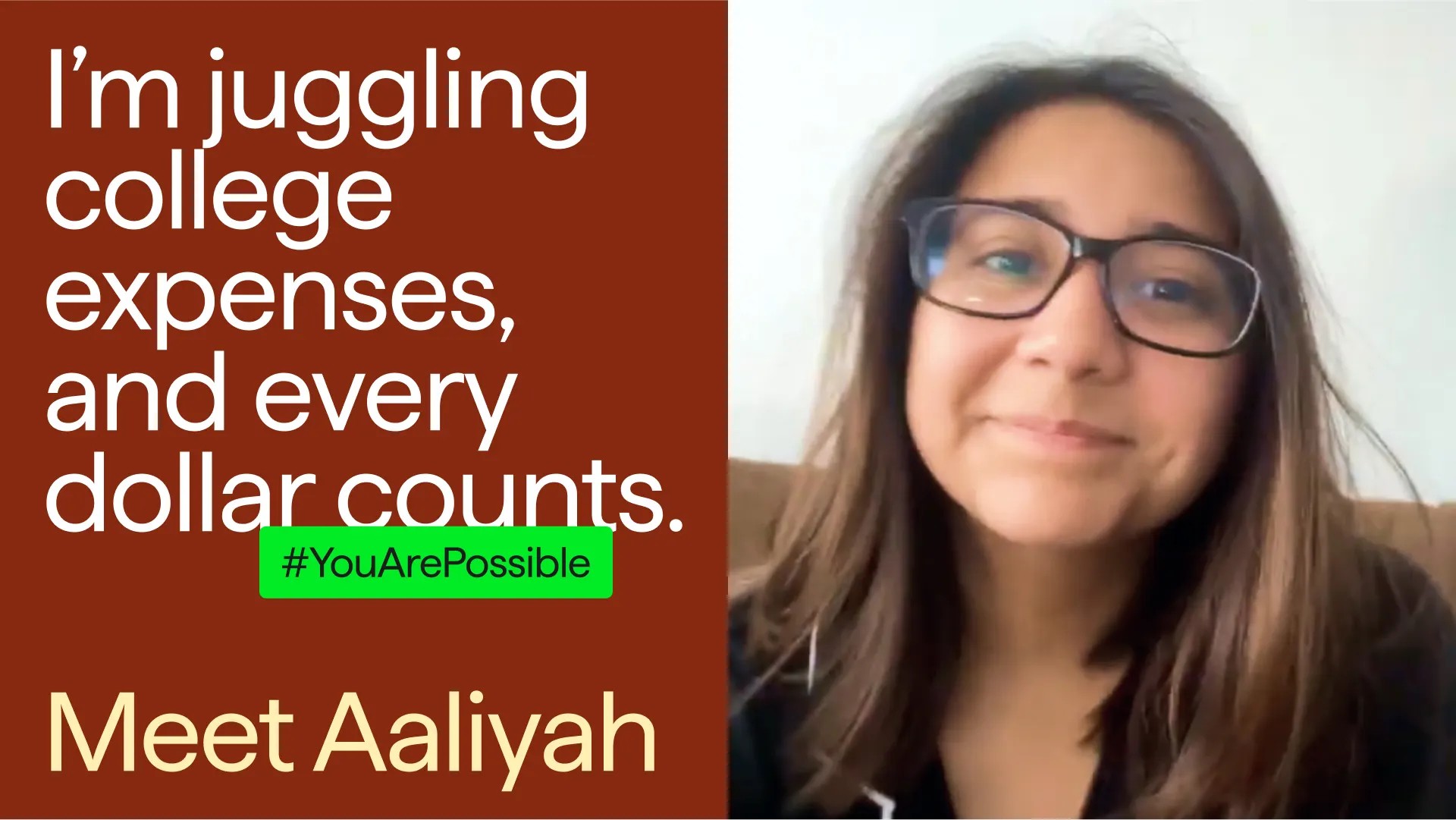 College is expensive, but Aaliyah found support and peace of mind with a Possible Loan when she needed it.